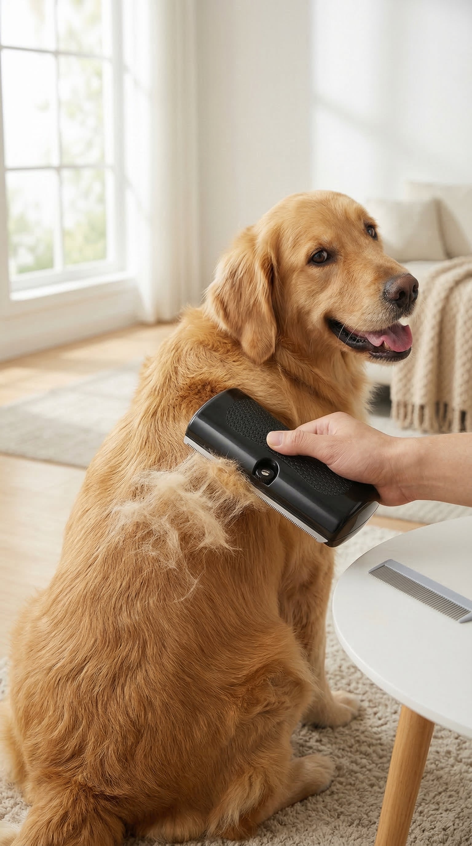 This deshedding dog brush reaches the undercoat to remove loose fur before it spreads. Reduce daily vacuuming and lint-rolling. Enjoy cleaner couches and less hair on your clothes, saving time every morning and making your home feel fresher for guests and family.